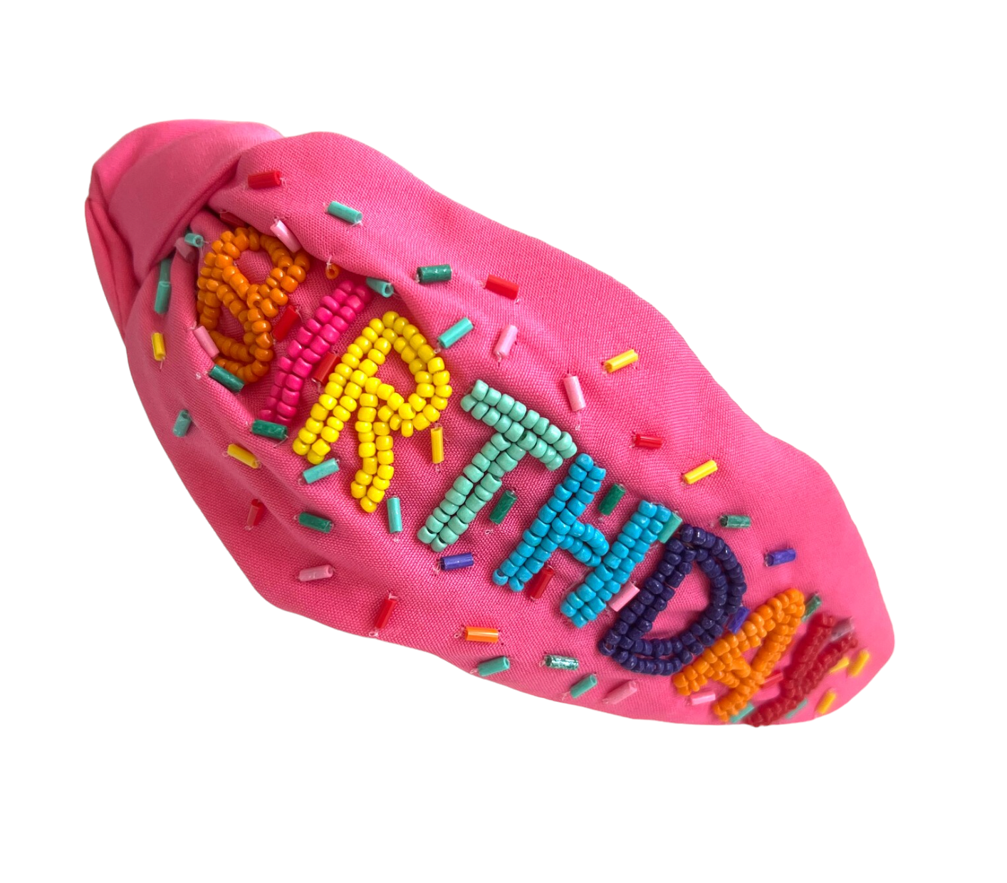 Happy Birthday Girl Pink Spring Knot Headband Hand Beaded