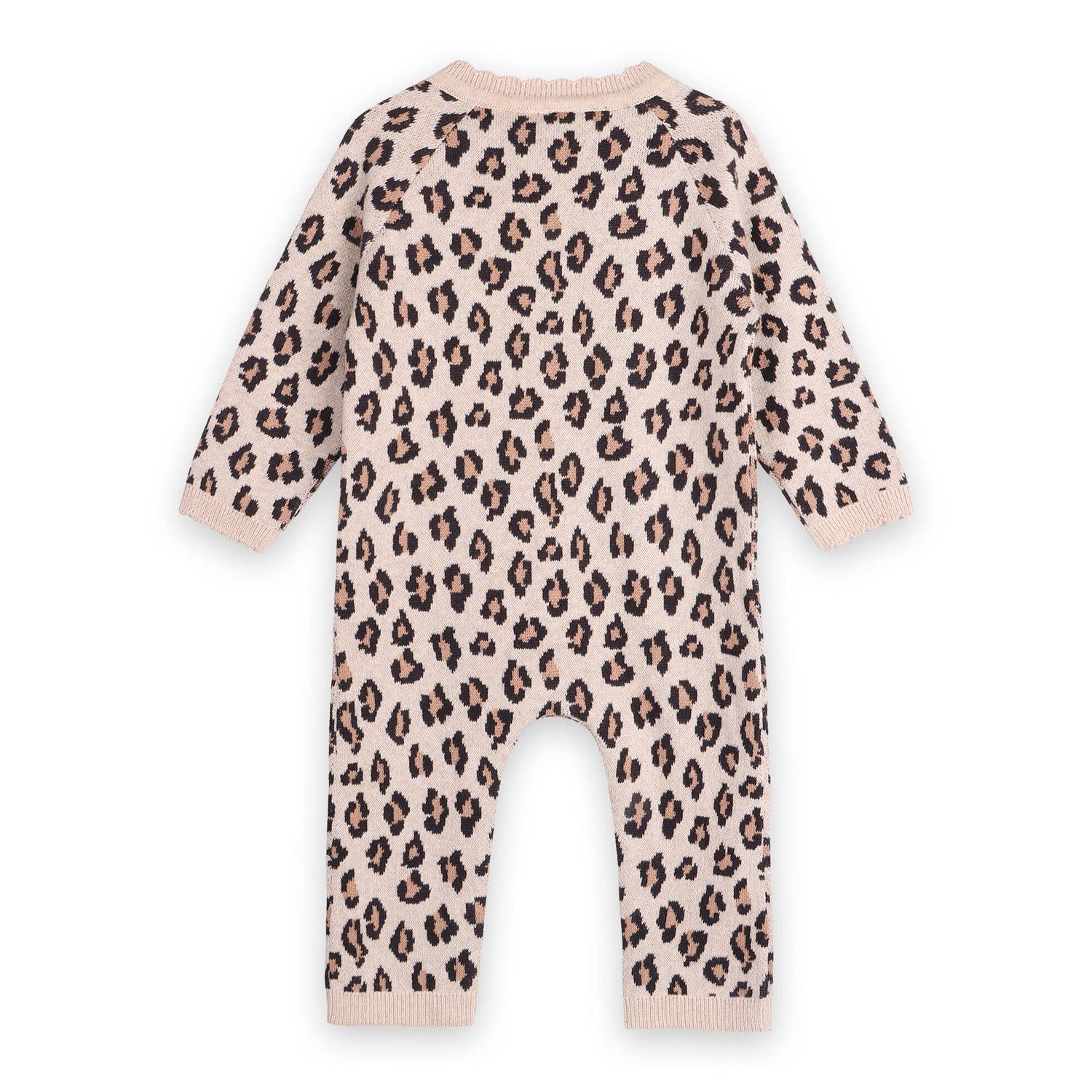 Leopard Jacquard Knit Baby Ruffle Jumpsuit