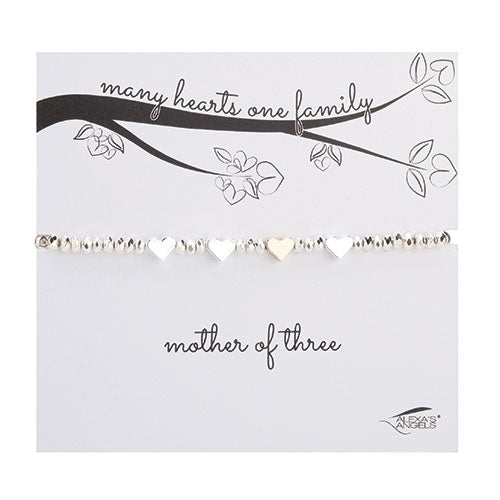 Delicate 18K gold plated hearts signify mom and are surrounded by sterling silver hearts to represent her children, grandchildren and loved ones.Perfect bracelet for any Mom this upcoming Mother's Day!