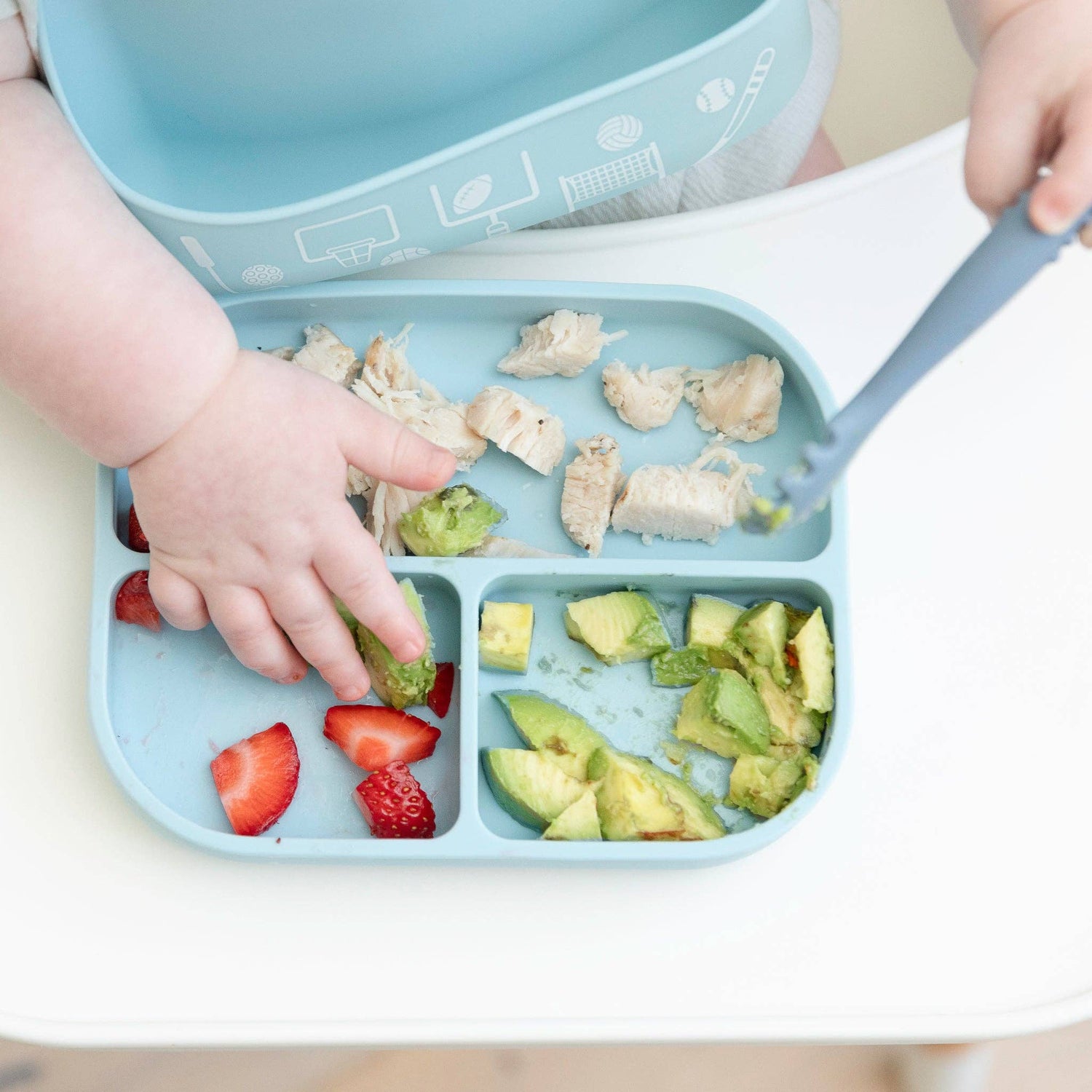 Introducing the first silicone beginner bib! We designed this bib to fit the littlest eaters. The bib has a narrow body which allows little arms to easily reach around and practice their eating skills. The catch pocket keeps your baby and surrounding area clean.