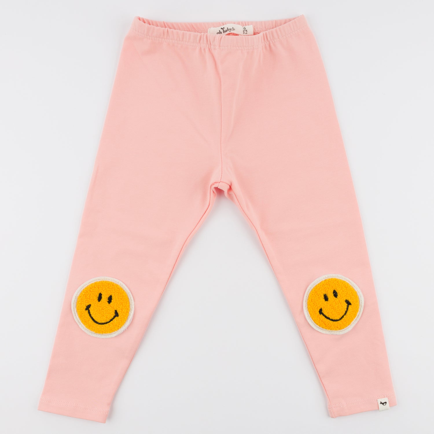 Put a smile on your face with our Smiley Patches Jersey Leggings! These eye-catching pink leggings feature a playful yellow smiley patch, adding a fun touch to any outfit. Comfortable and stylish, they are perfect for any casual or active occasion.